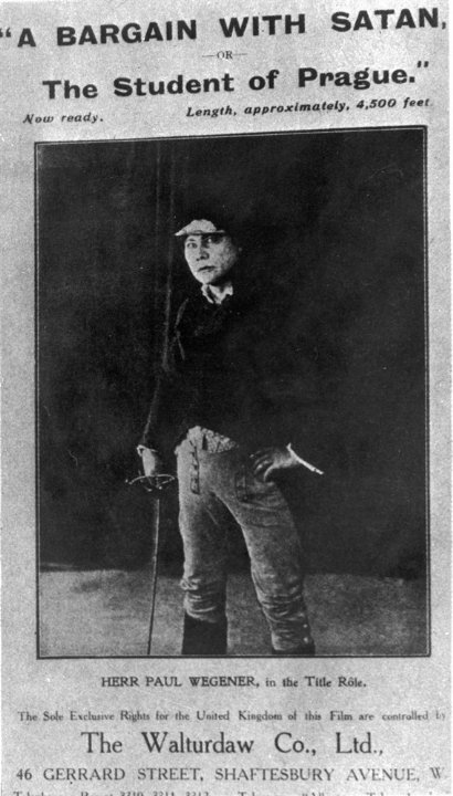 The story is of a Prague student named Balduin who signs a contract with the mysterious Scapinelli, promising him anything in Balduin’s room in exchange for 600,000 florins. To Balduin’s horror, Scapinelli chooses the young man’s reflection and commands the doppelganger to ruin the real Balduin’s reputation and good name. The movie follows the same story-line and structure as Stellen Rye’s original movie but with understandably more flair and sophistication as filmmaking had advanced considerably in the intervening years. Steve Haberman writes of Galeen’s style: